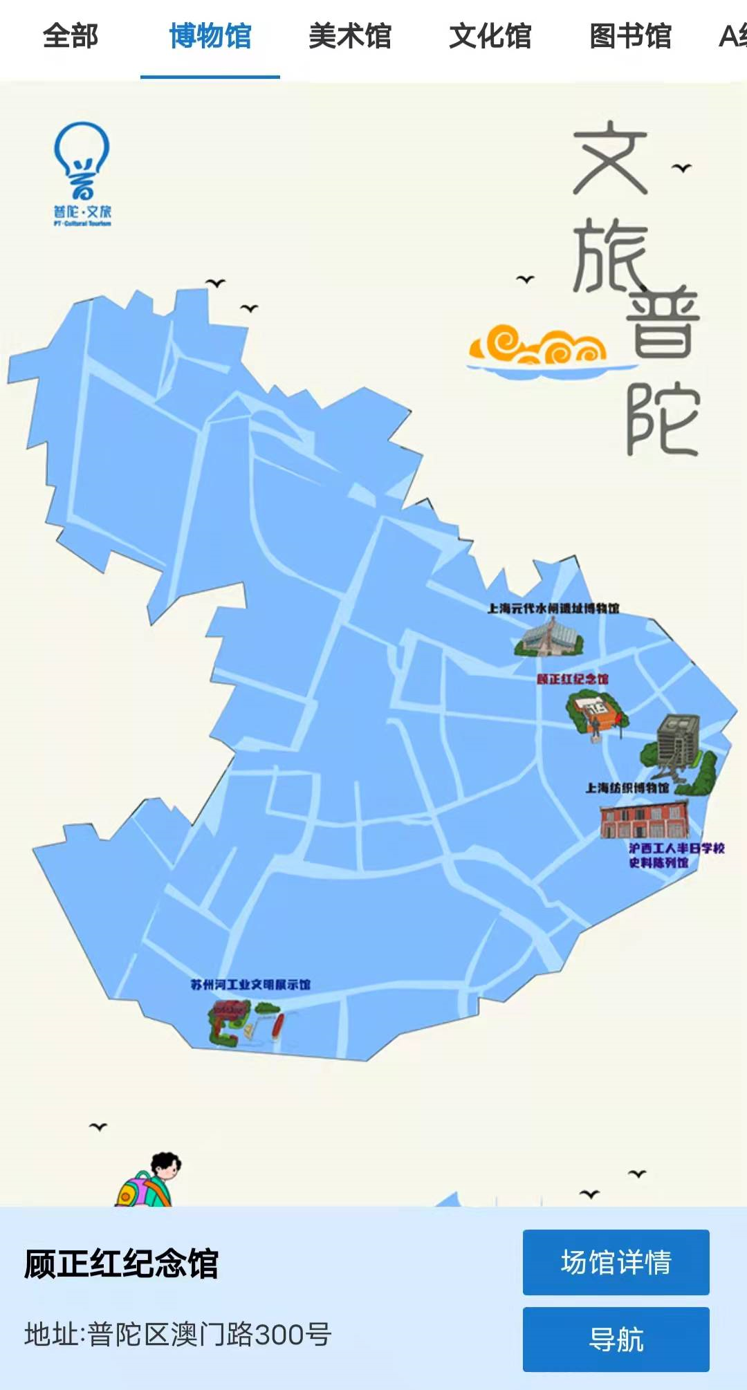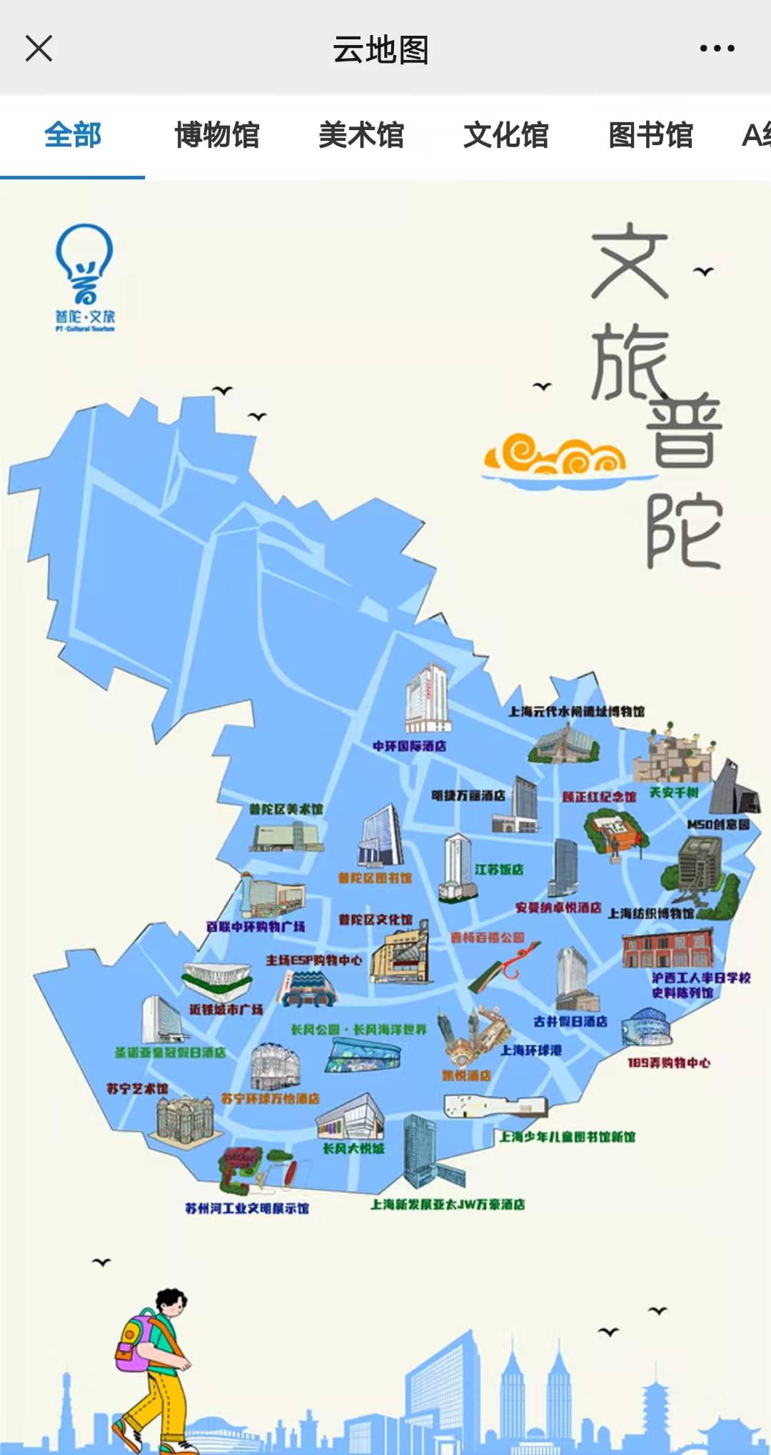 在这里汇集了博物馆、美术馆、文化馆、图书馆、A级景区、商场、酒店等文旅场所您可以一键获取路线直达目的地感受普陀特色魅力。