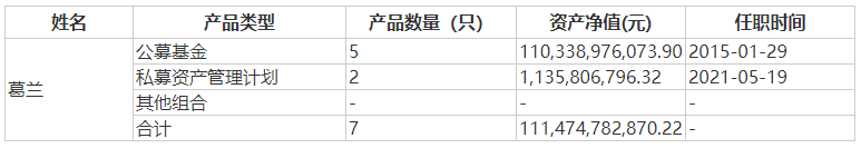 1月22日,葛兰管理的5只基金悉数披露2021年四季报,数据显示,截至2021年末,葛兰管理的公募基金规模正式突破一千亿元,达1103.39亿元,较2021年三季度末的970.01亿元,单季度增加133.38亿元,环比增幅达13.75%。