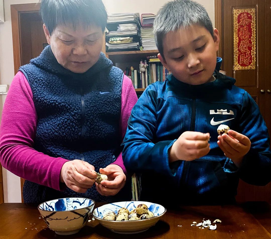 四年级三班的小朋友肖子腾在外婆的指导下,亲手烹制了一道外婆红烧肉。这道菜将猪肉切成块状,将百叶切段打成百叶结,再把鹌鹑蛋去壳,随后依次下锅,并加入调味料进行翻炒。不一会儿,香喷喷的外婆红烧肉就出锅了。
