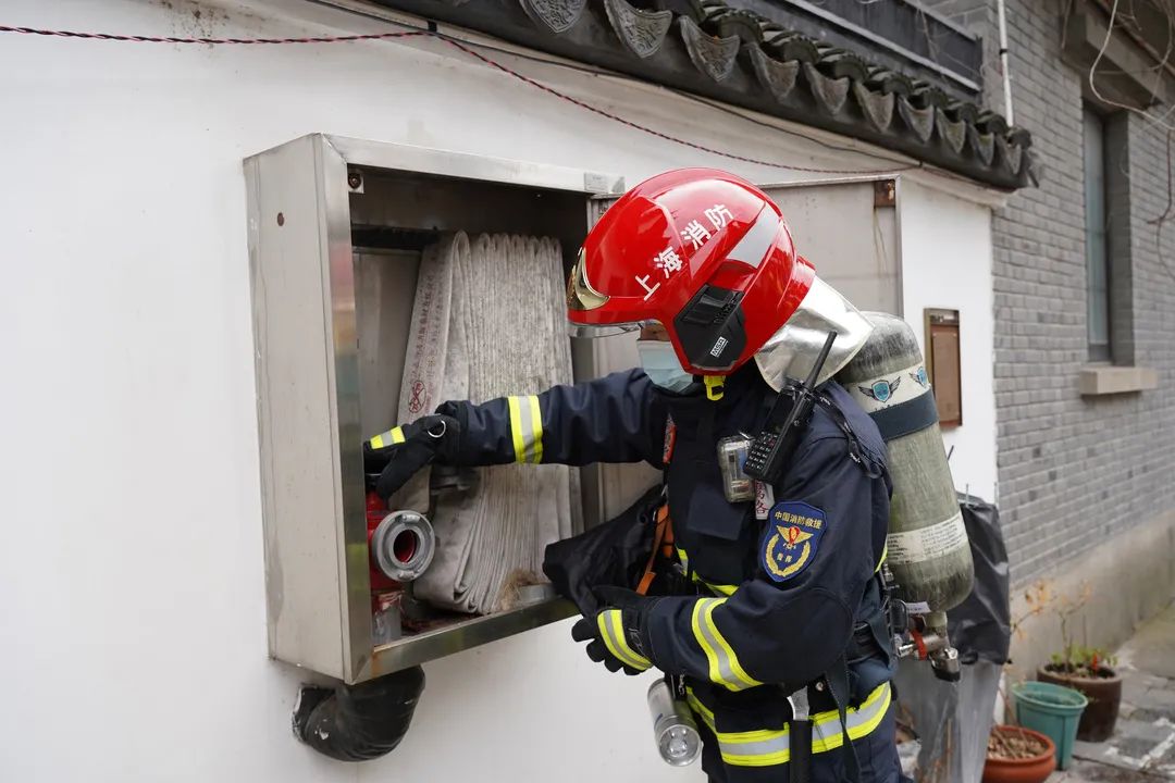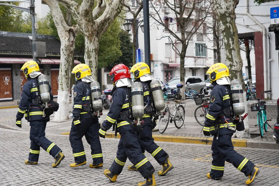 压缩空气机、面罩、消防腰斧、手电筒……何树军和队友身穿着重达30公斤的防护装备走在州桥老街上,仔细检查着每一处消防设施,查看其是否配备完好,安全出口、疏散通道是否畅通。