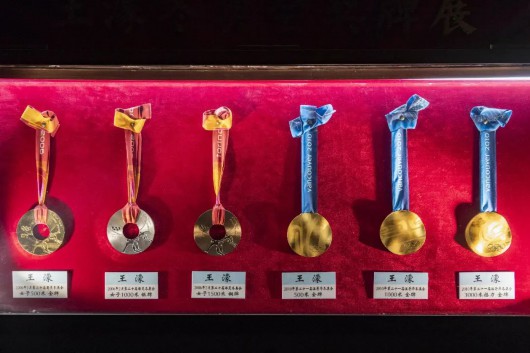 这是1月8日在七台河短道速滑冠军馆内拍摄的王濛在2006年都灵冬奥会和2010年温哥华冬奥会上获得的六枚奖牌,包括四枚金牌、一枚银牌和一枚铜牌。新华社记者 谢剑飞 摄