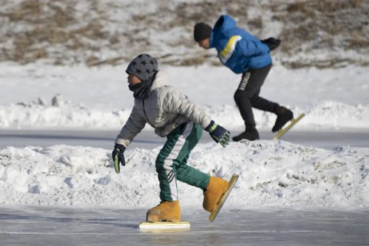 滑冰爱好者在黑龙江省七台河市桃山区一处冰场滑冰(1月12日摄)。新华社记者 张涛 摄