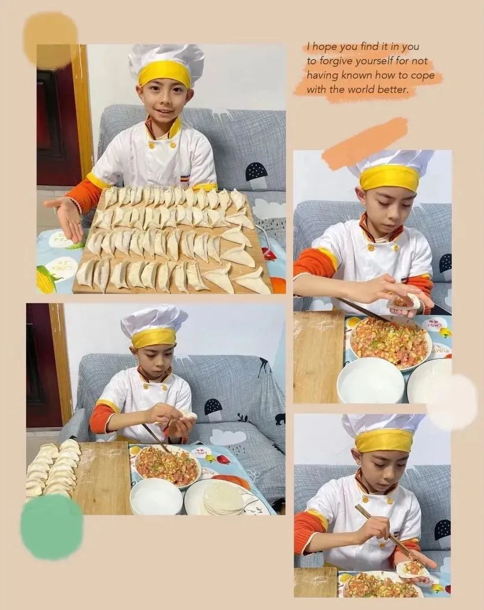 虹桥机场小学鼓励学生动手实践,点亮崭新技能。低年级同学学会自己系鞋带、扣扣子,高年级同学学会整理、布置房间,帮助父母分担家务。在家长的言传身教下,同学们参与置办年货,学做饺子和汤圆,当了回小厨师,和家人一起品尝美味佳肴。