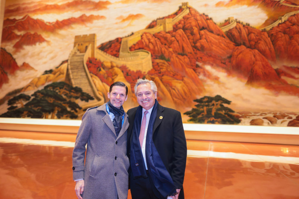 2月4日,阿根廷总统费尔南德斯(右)与阿根廷驻华大使牛望道在中国共产党历史展览馆内合影。图片由阿根廷驻华大使馆提供