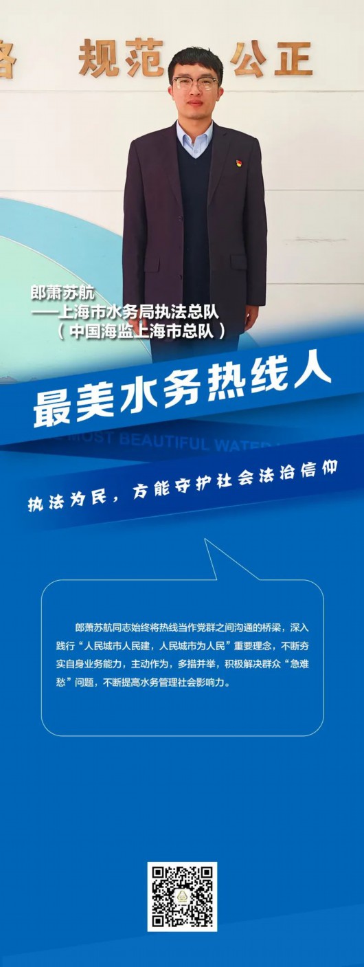 今日带你走近“最美水务热线人”——上海市水务局执法总队(中国海监上海市总队)郎萧苏航,快来了解一下~