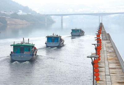 福建省闽江水口段航道上,货船正驶向闽江上游,进行返航归位。施 钰 练惠顺摄影报道(人民视觉)