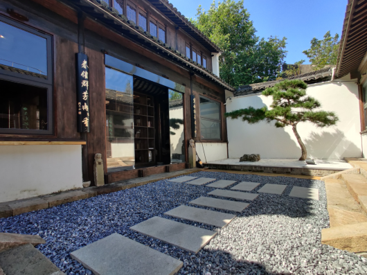 走在院廊之间,三进七开间,移步易景,颇有一番“庭院深深深几许”的意境。精心布置后的书苑有前庭、中庭和后花园,连廊半亭、粉墙黛瓦,环境优雅。