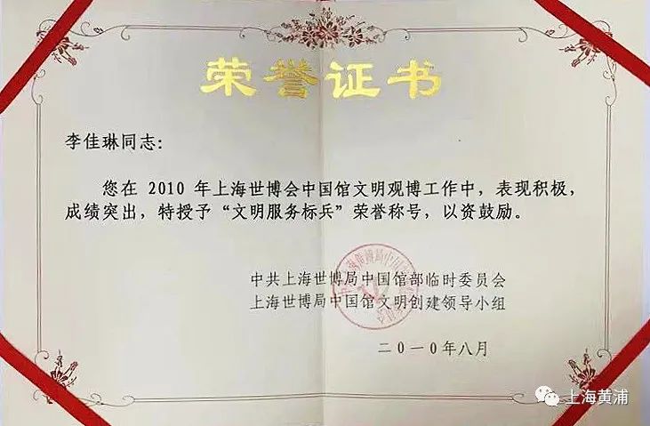 在世博会圆满落下帷幕后,李佳琳通过参与招聘考试,经过层层选拔来到了五里桥街道社区事务受理中心,成为了一名窗口服务人员,而他也把“世博精神”带到了社区,“用心、用情服务好社区居民”。