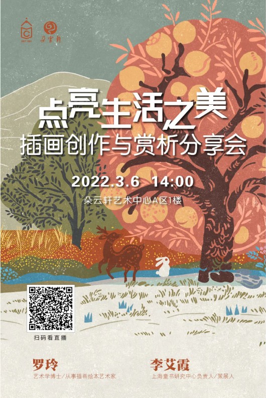 继大年初五举办了绘本大咖线上直播导赏活动后,本周日(3月6日),又邀请了2021年插画展的专业评委罗玲老师和李艾霞老师,与大家一起来畅谈“点亮生活之美”插画的创作及赏析。