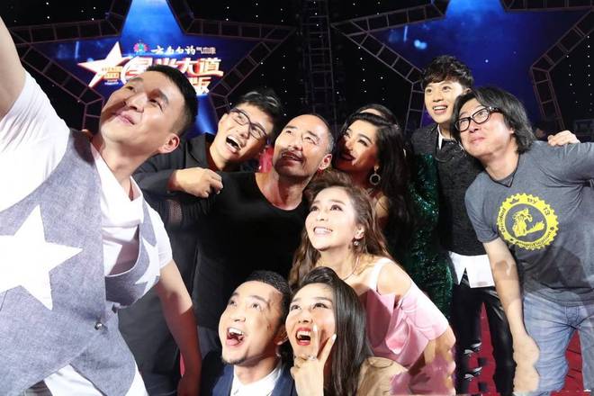 旭日阳刚,在央视舞台上与朱迅合影。电视截图