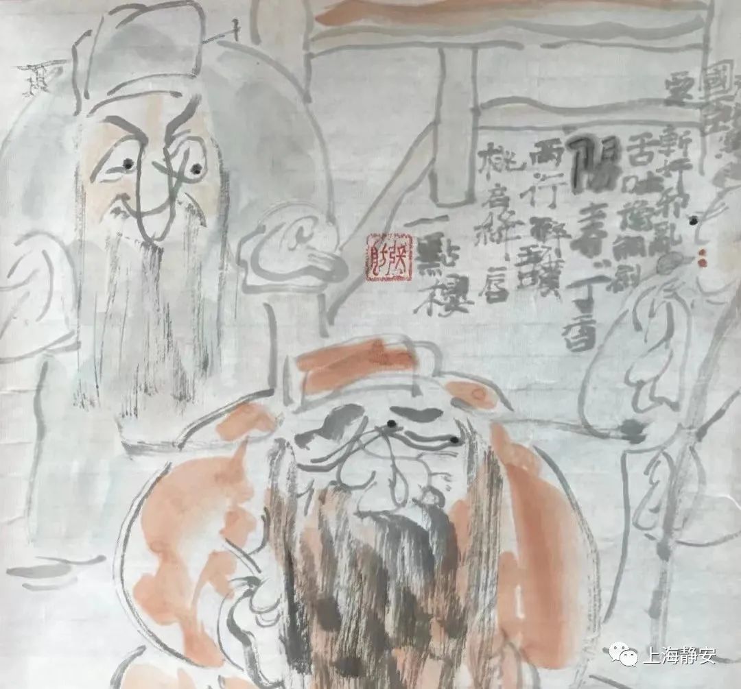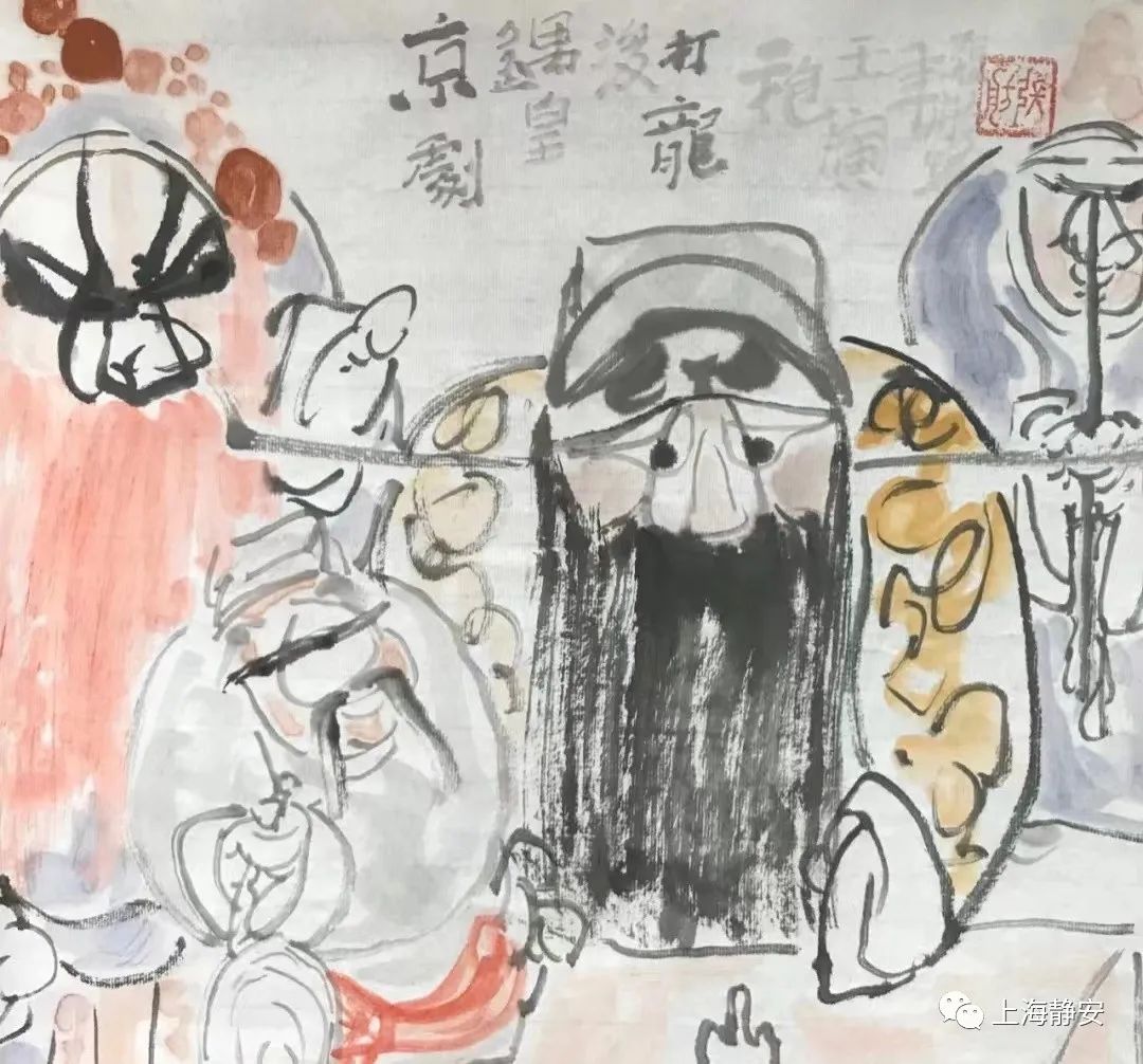 张舫的戏剧人物画就“法从关良”,以书入画,通过解构、抽象与重建,用充满爆发力的书法线条和变化丰富的墨色凸显人物的个性和剧情的张力,形成独特的大写意画风。