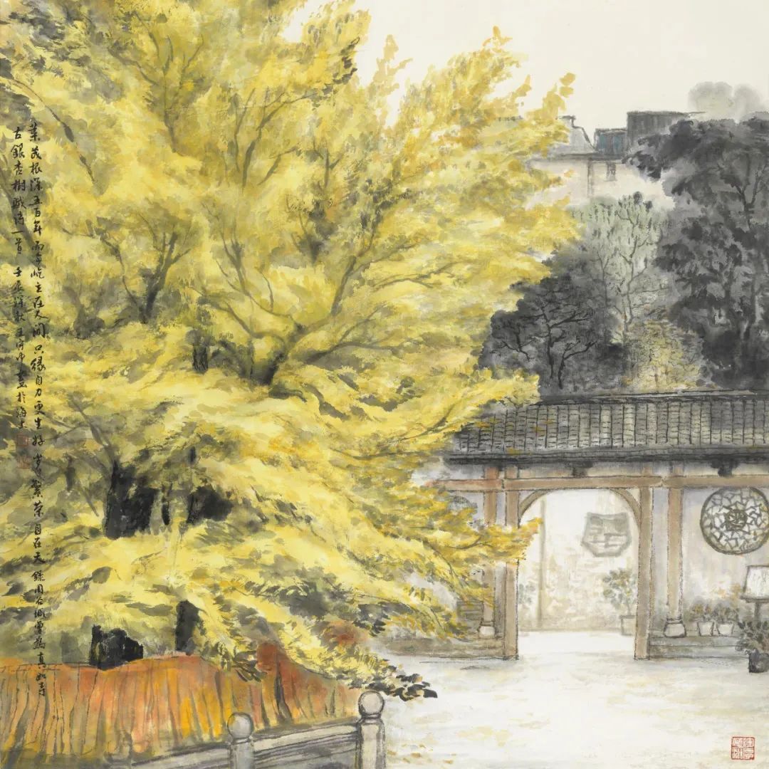 王守中的金笺山水更是开拓了金笺画的视觉新表达。其作赋彩秀丽、烟岚氤氲、熠熠生辉,融入温婉又不失大气的女性气质,享誉画坛。