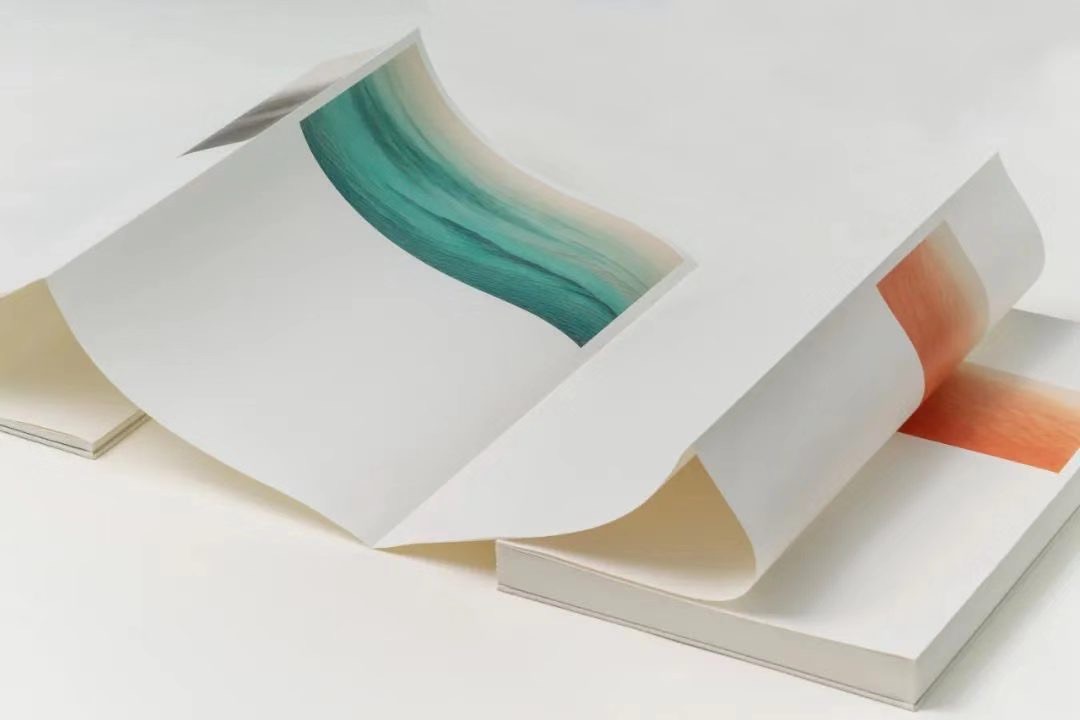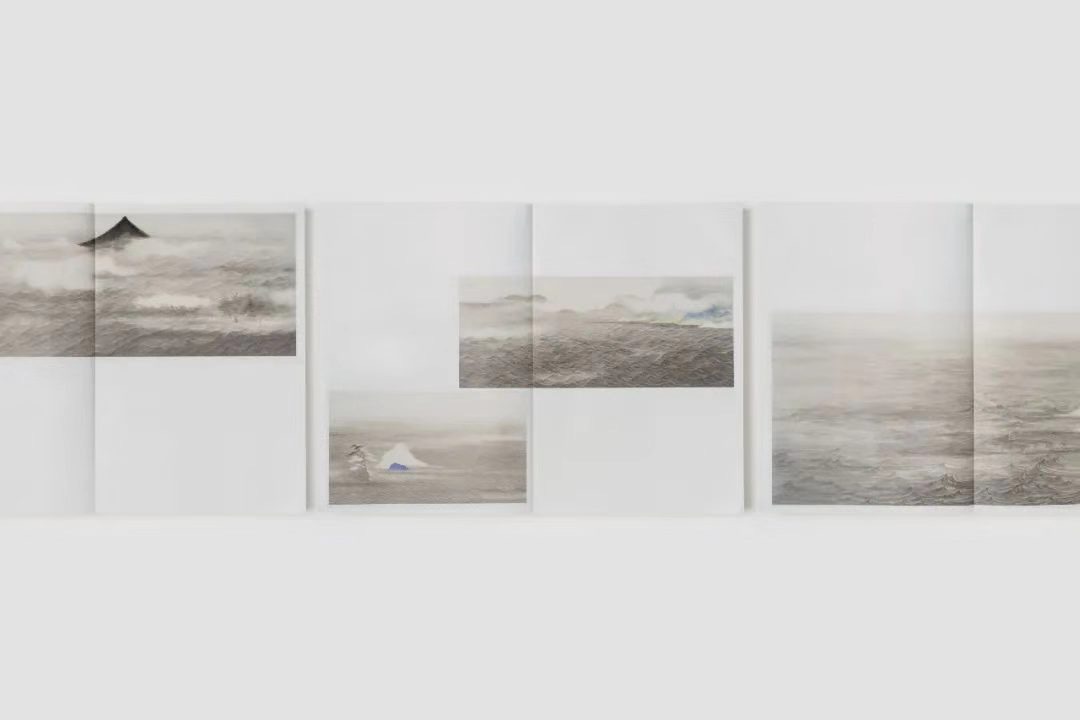 层层打开,作品信息和绘画作品被分成两册,互不干扰。其中,作品信息壹册为线装,专色印刷;绘画作品壹册为中国传统的经折装。书籍设计师希望通过这样的打开方式,可以让读者的视角变得更加多样与开放。