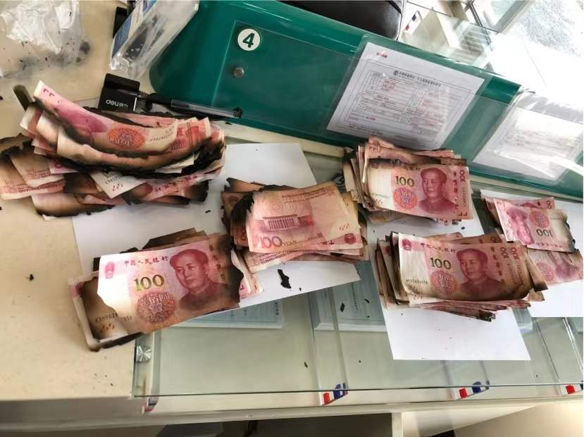 20000余元现金不慎被烧,松江农行清点2个多小时,只有“余”字没“追回”