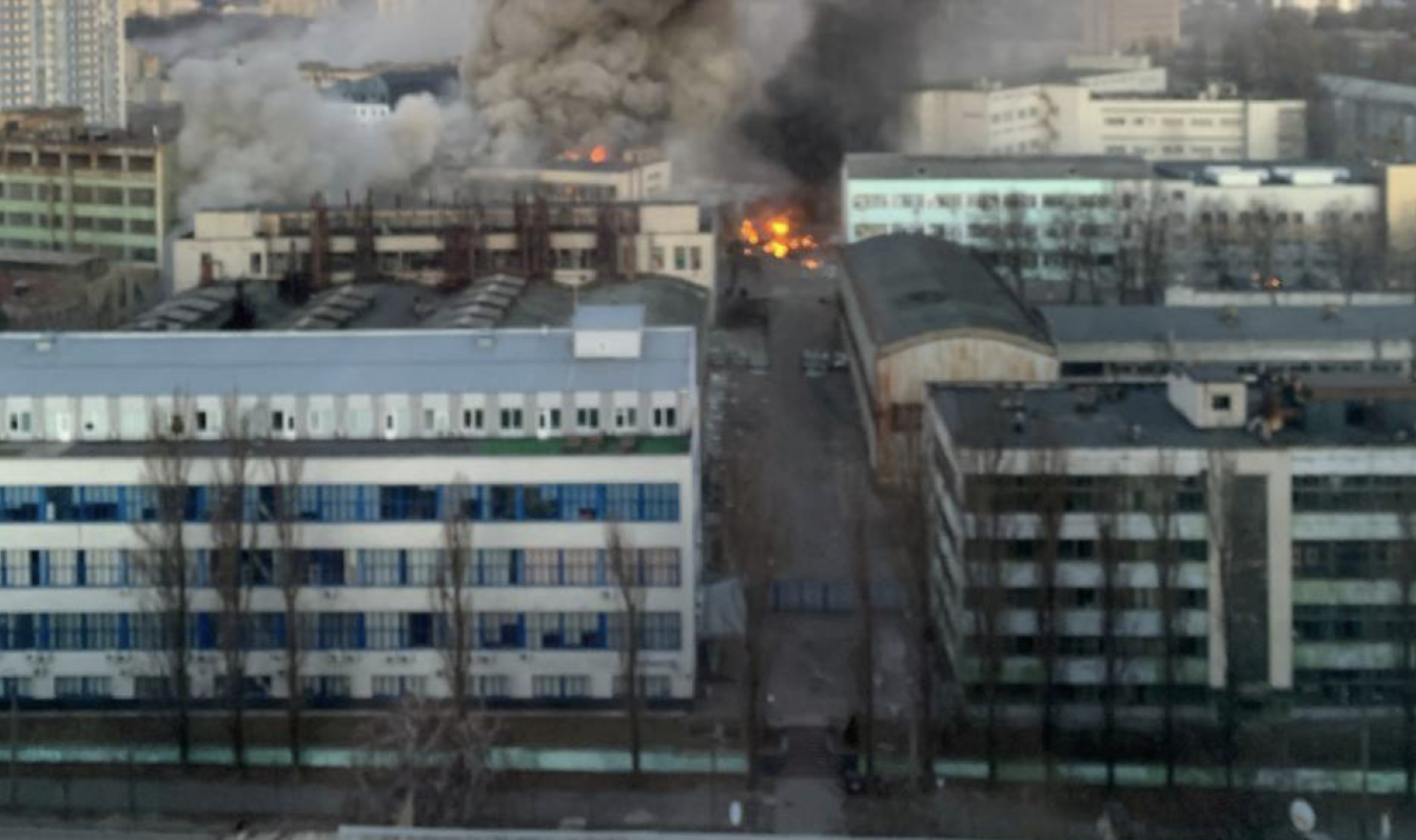 社交网站上据称为俄军16日清晨打击基辅军事工业目标的视频截图