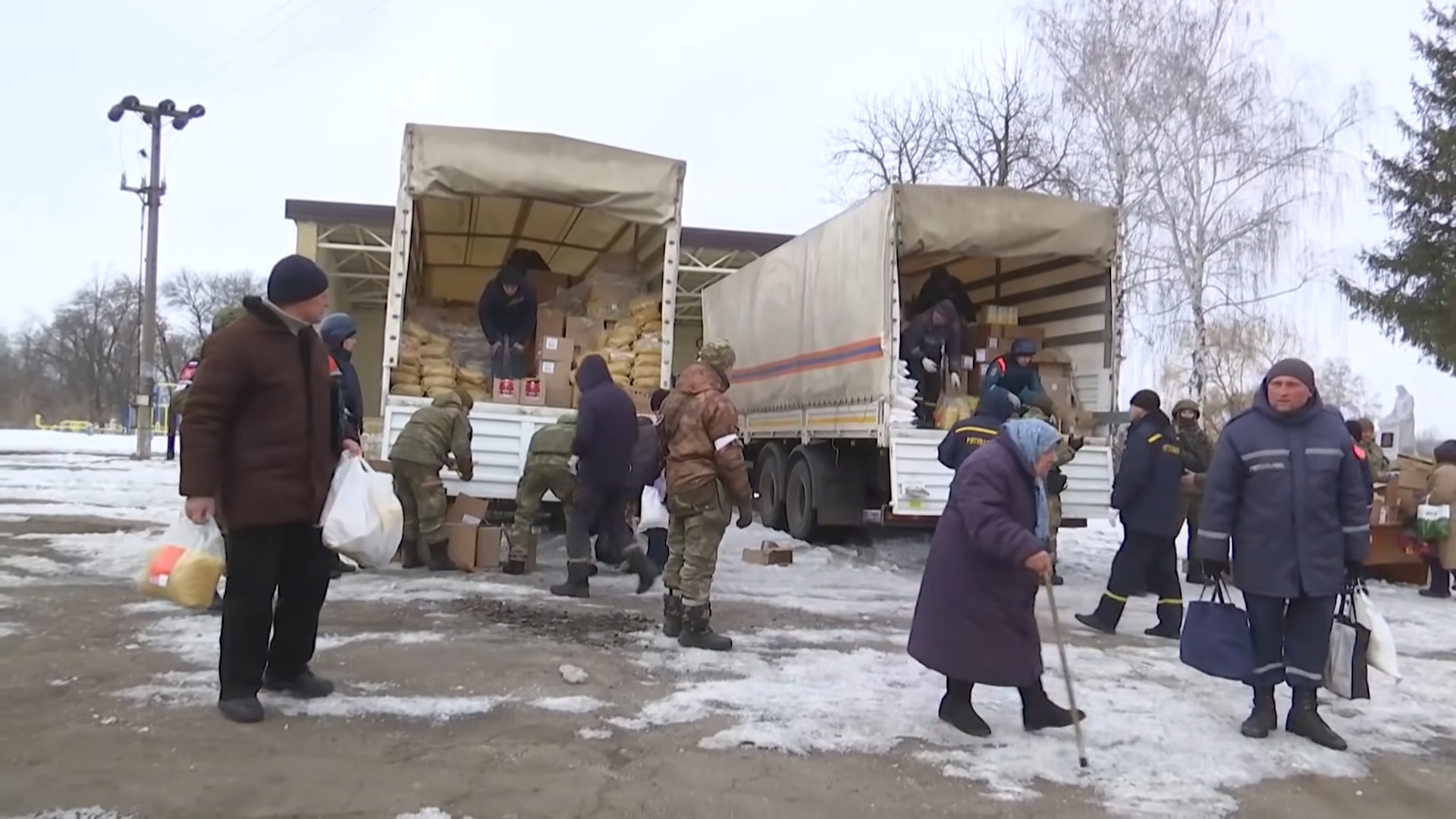 俄国防部在YouTube上发布的视频显示,在哈尔科夫州的这批物资主要分发给了老人和妇女,视频简介中称为“有需要的居民”。