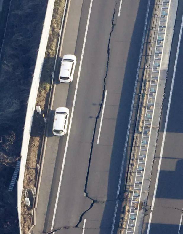 现场曝光:日本强震后公路裂开50米长缝 两辆车被卡住爆胎