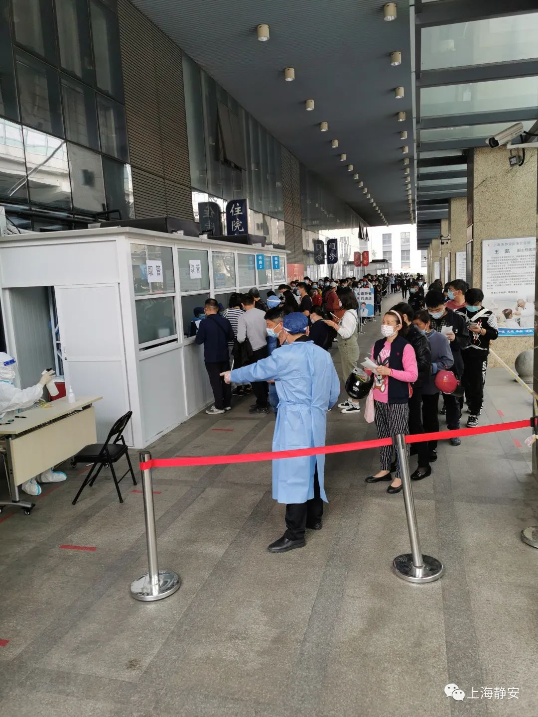 近日,静安区市北医院做核酸检测的人数急剧上升,每日核酸采样量从以往日均300-400人飙升至3500-4500人,最高峰达到了5000人,较日常工作量猛增近10倍。