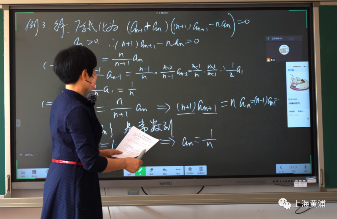3月16日上午10点10分,是向明中学高三数学老师蒋君波的线上网课教学时间,她没有选择在家上网教学,而是特地来到了学校,与班级里的31名学生相约在云端,用教室里的希沃白板,通过腾讯会议线上视频连线给孩子上课。