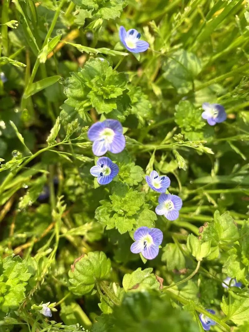 阿拉伯婆婆纳是春季较为常见的小野花,一听名字,便可知道它是一种外来归化植物。蓝色的小花很可爱,盛花时期能形成不错的花毯覆盖效果,但它比较脆弱,一碰就会掉。