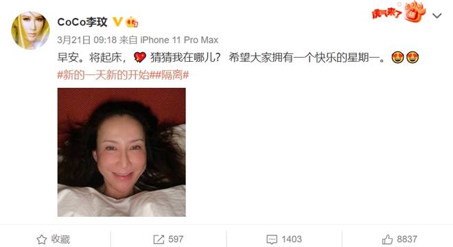 此外,李玟还在文案中问到:“猜猜我在哪儿”,有网友猜测是长沙或深圳,李玟本人也亲自回复“没错”确认了该消息。据了解,近日曾有消息爆料称李玟将参加《声生不息》或《乘风破浪》的录制。