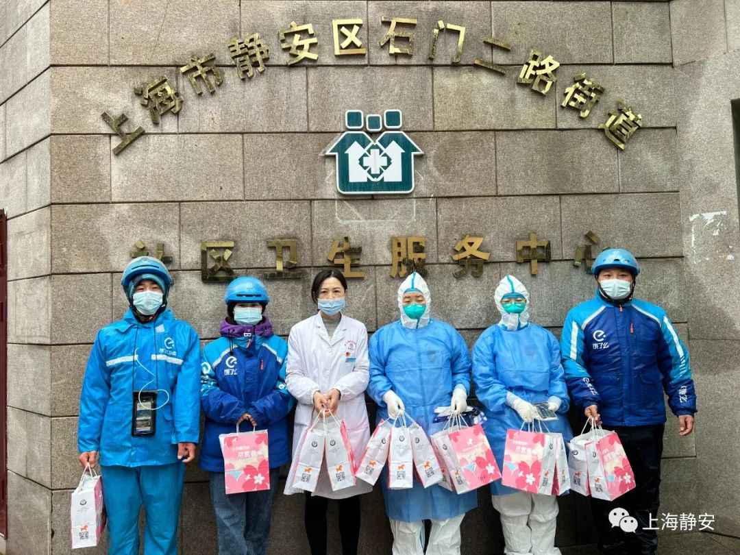 3月21日早上10点,三位饿了么蓝骑士风雨无阻,准时将100杯挪瓦咖啡送到了石门二路街道社区卫生服务中心。下午2点,来自饿了么和挪瓦咖啡这两家上海本土企业的“暖心咖啡”,又继续传递到了石门二路街道社区卫生服务中心。