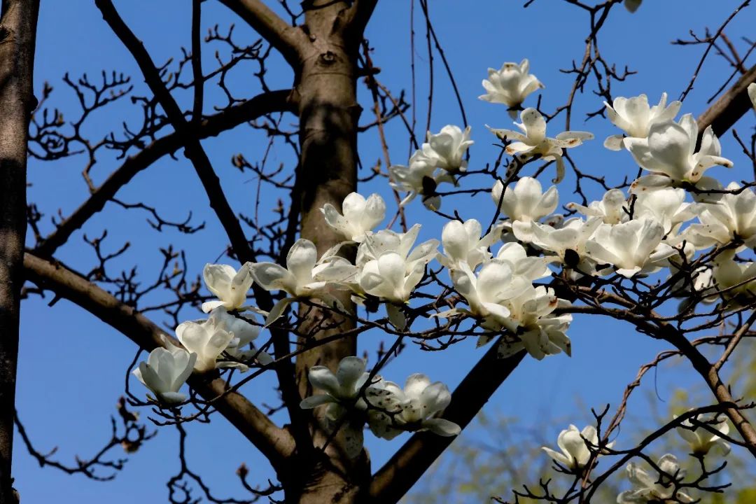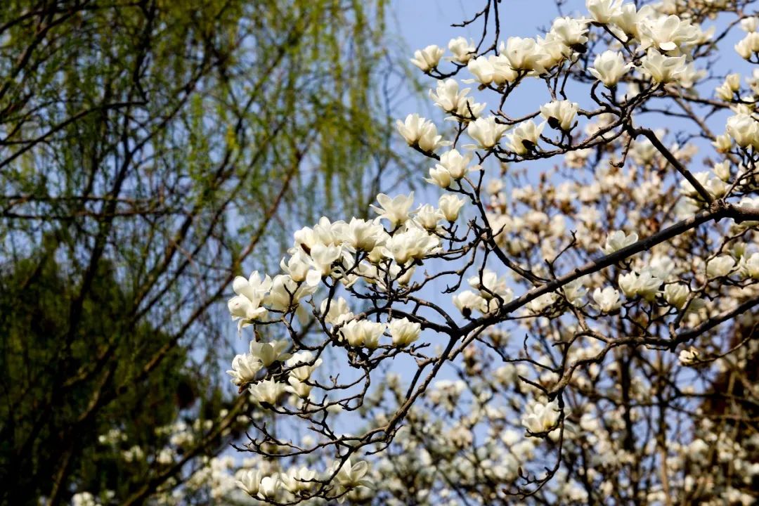 春分已至,玉兰也迎风开放,望春园内的白玉兰已亭亭玉立,上海市的市花正进入盛花期,花期为3至5月。白玉兰是玉兰花中开白色花的品种,花如白玉,花香似兰,美丽且清香,早春开花时犹如雪涛云海,蔚为壮观,与园内其他的树木花草一同奏响春天赏花的进行曲。