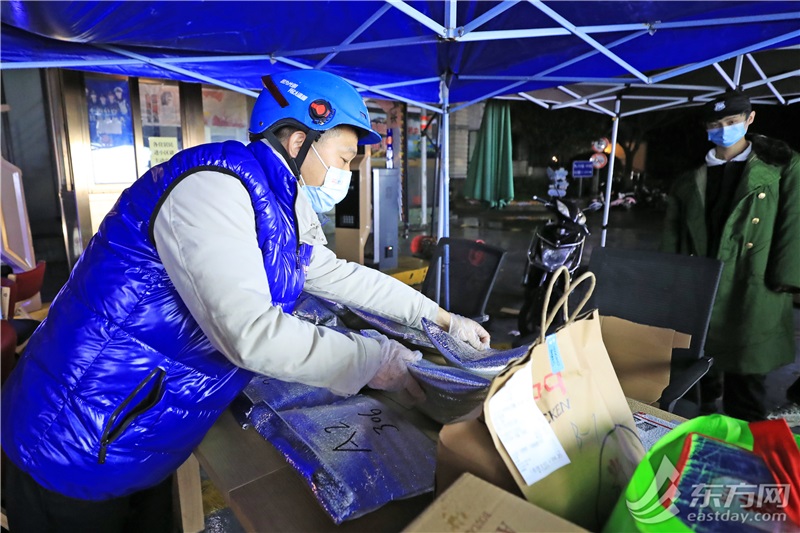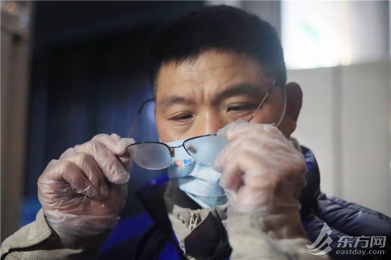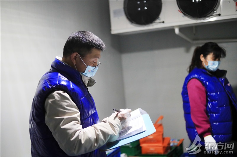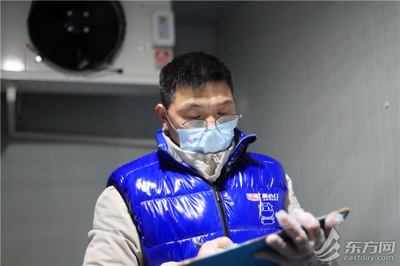 产品卸下送入冷库,冷库温度保持在1至6℃之间,即使穿着厚厚的羽绒工作服,钻进冷库依然会倒抽一口凉气。大约每隔十分钟,柳魁就会出来缓一会儿,然后再进库继续理货。倒春寒的上海下着冷雨,柳魁从冷库钻出来,镜片上竟起了一层蒸汽。“说明室外还是挺暖和的。”柳魁一边擦镜片,一边开玩笑说。