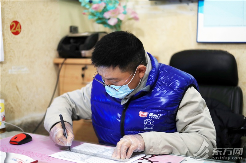 疫情期间,有个别小区进行封闭管理,牛奶不能送上门,光明乳业特地准备了保温袋,可有效防止阳光照射,避免鲜奶变质。“这个封控小区里,有好几户居民都订了光明的牛奶。”柳魁用显眼的记号笔写上客户门牌号,放在小区门口的指定存放点请客户自提,让遵守封闭管理要求的市民也喝能喝上放心好奶。