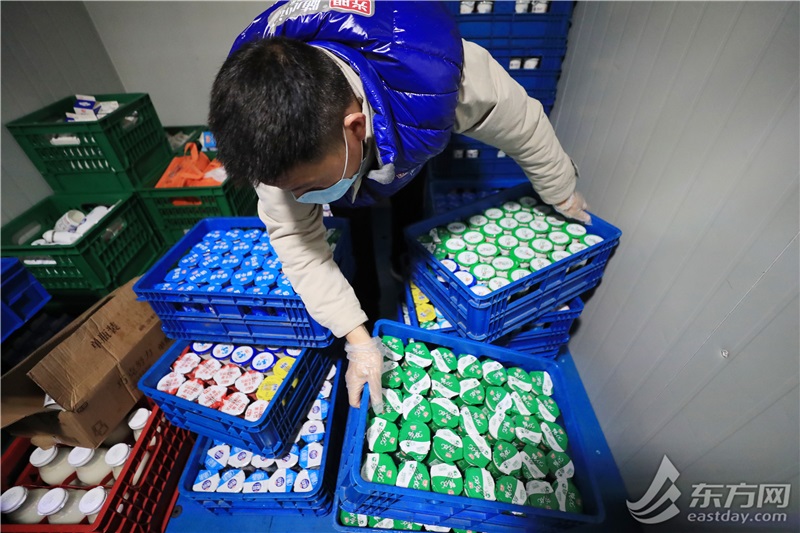 ▼为了让上海市民每天喝上新鲜奶,我们的黑夜是他们的白天。柳魁忙着卸货入库、清点和分拣货物: