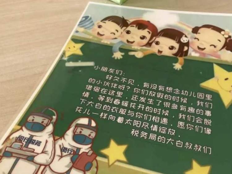 3月中上旬,闵行区税务局的20名志愿者进驻莘庄某确诊病例封控小区,参与疫情防控小区封闭管理相关志愿工作。期间,“税务大白”们,暂住在了小区幼儿园中,临走“税务局的大白叔叔们”给小朋友们留下一封信,并在花圃里为孩子们播种了“希望之花”……
