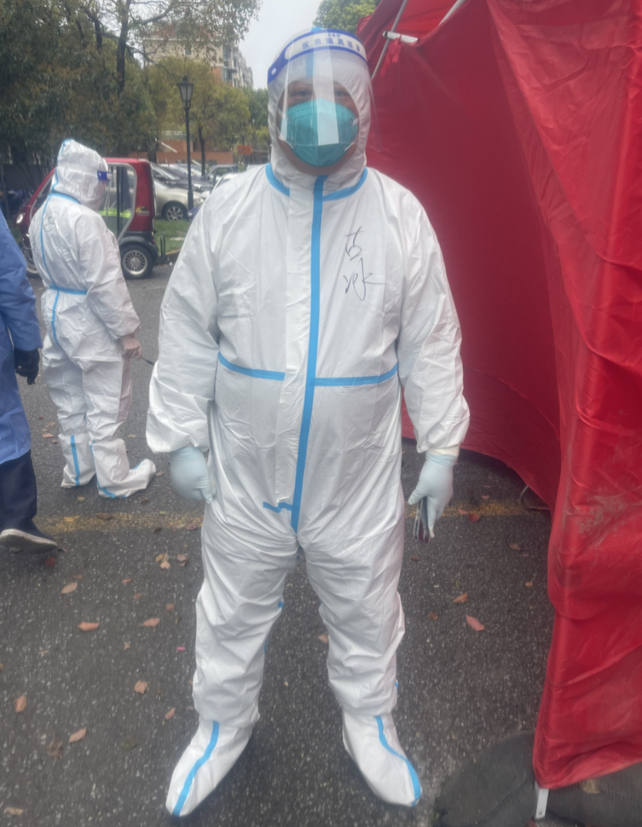 东华大学学生王玥是淞南镇嘉骏香山苑小区的一位居民。在疫情期间,她勇敢报名成为志愿者,投身防疫一线工作。这其中,不仅仅有她自己的想法,还有很大一部分来自家庭的影响:她的父母都是光荣的党员,母亲更是淞南镇的一位居民区书记。在电视中、朋友圈看到过无数次被群众亲切称为“大白”的防护服,这一次也穿在了自己身上。她跟随社区工作者进楼道排摸住户信息,帮助居民提前完成核酸检测预约,每一步她都很耐心很细心。“你说得很清楚,辛苦了!”是她听到最多的话,藏在“大白”里她感到很自豪、很受鼓舞。早晨、中午和傍晚是外卖高峰期,她戏称自己是“快递师傅小王”,并给自己定下工作目标——餐餐必送、户户必叫、零差错率。每次一拿到外卖、生鲜或药品时,她都会骑上“心爱的小毛驴”,向着目标单元楼前进。核酸检测过程中,遇到耄耋老者、稚嫩孩童、行动不便的居民时,她都会上前提供帮助,确保大家都能顺利完成核酸检测。平时,王玥是家里捧在手心的“小公主”,当母亲心疼地问她累不累、还愿不愿意继续参加时,她总是坚定地说:“愿意”。亲身经历才能感同身受,她相信,春天已至,回暖可期,在大家的齐心协力下,一定能共克时艰,赢得胜利。