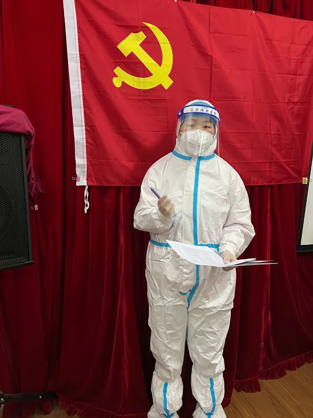 上海工商职业技术学院学生潘珺慧是淞南一村居委社区工作者的女儿。因母亲在之前的疫情防控工作中,长时间穿戴防护服引发过敏症状,潘珺慧不忍母亲继续“带病披挂上阵”,便主动请缨,替母“出征”。那段时间,淞南镇需要开展人员召回、信息排查、48小时的2次核酸检测等工作,时间紧,任务重,网格化核酸筛查工作也同步启动,只靠社区工作者根本无法顾及。穿上“大白”的潘珺慧仿佛拥有了最坚硬的铠甲,在防疫一线,她不顾潜在危险,深入封控楼道挨户排查人员信息,落实人员召回。同时又转战核酸检测现场,帮助维持秩序,协助医务人员进行扫码登记,为不会使用智能手机的老人进行预约操作,忙得不亦乐乎。一直以来,潘珺慧都盼望着成为一名光荣的共产党员,当看到居委里挂着的党旗,她忍不住过去拍照留念并表示,通过这次“社会实践”,自己深切明白了基层党组织凝聚民心的力量有多么强大,以后还要多参与社区工作,把母亲的“功夫”和“招式”都学过来,通过丰富的历练,不断进步与成长。