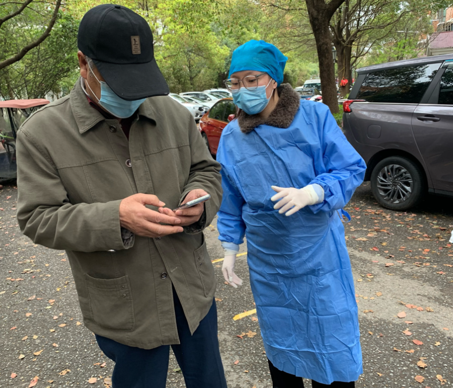 淞南镇淞南七村居民区志愿者林红是居民区党支部书记、楼组长,也是理论宣讲团、市民巡访团成员。她为人热情、积极肯干,在居委会就化身“居委干部”,走在路上便是疫情防控“宣传员”。虽然已有73岁,但她对于新事物的接受能力很强,手机、电脑的操作在同龄人中绝对是“佼佼者”。此次核酸检测、抗原检测对她来说,是接触的“新知识”,但她很快就学会了,还能指导其他志愿者。引导楼道居民有序下楼排队,配合医护人员粘贴标签纸,挨家挨户发放抗原检测试剂盒……“即使忙得头晕眼花、站也站不稳,她还是不知疲倦地在楼道群里统计大家的检测情况,做好疫情防控相关问题的解答。虽然自己很忙很累,但她更把别人的忙和累看在眼里、记在心里,遇到刮风下雨、断崖式降温等情况,她总记得提醒一线工作人员们——“注意保暖,注意安全……”将自己的正能量源源不断地传递给身边的每一个人。
