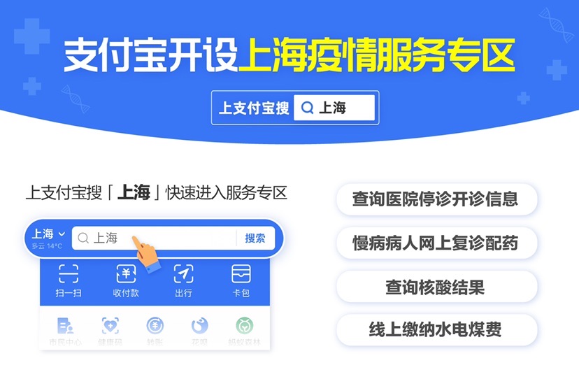 东方网记者从支付宝获悉,平台在首页推出“上海一站式防疫服务”,设立慢病复诊配药专区,上支付宝搜“上海”,即可进入专区。