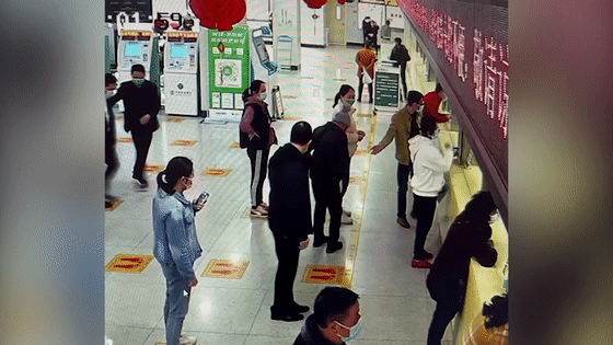 当孕妇鞠躬向男子表达感谢后,这位男子便主动向队伍最后走去重新排队,没想到的是原本排在这位男子后面的群众也纷纷走到了队伍最后。
