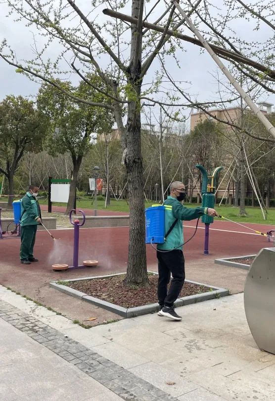 目前,奉贤绿化市容局已对我区所有公园绿地内的公共厕所、座椅、栏杆、废物箱、园路及铺装,亭廊、管理、游憩及服务等建构筑物,健身及游乐设施等进行消杀。