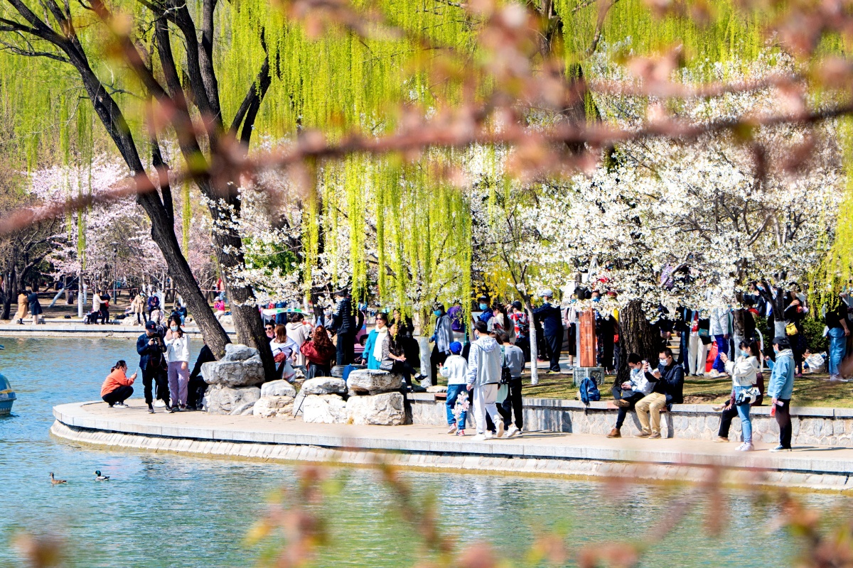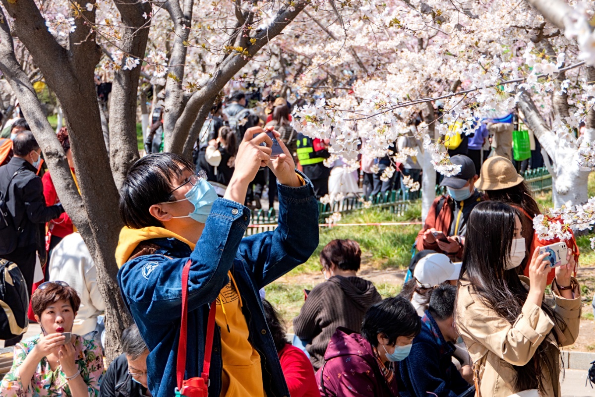 清明假日 北京玉渊潭公园迎来大量观赏樱花的游客