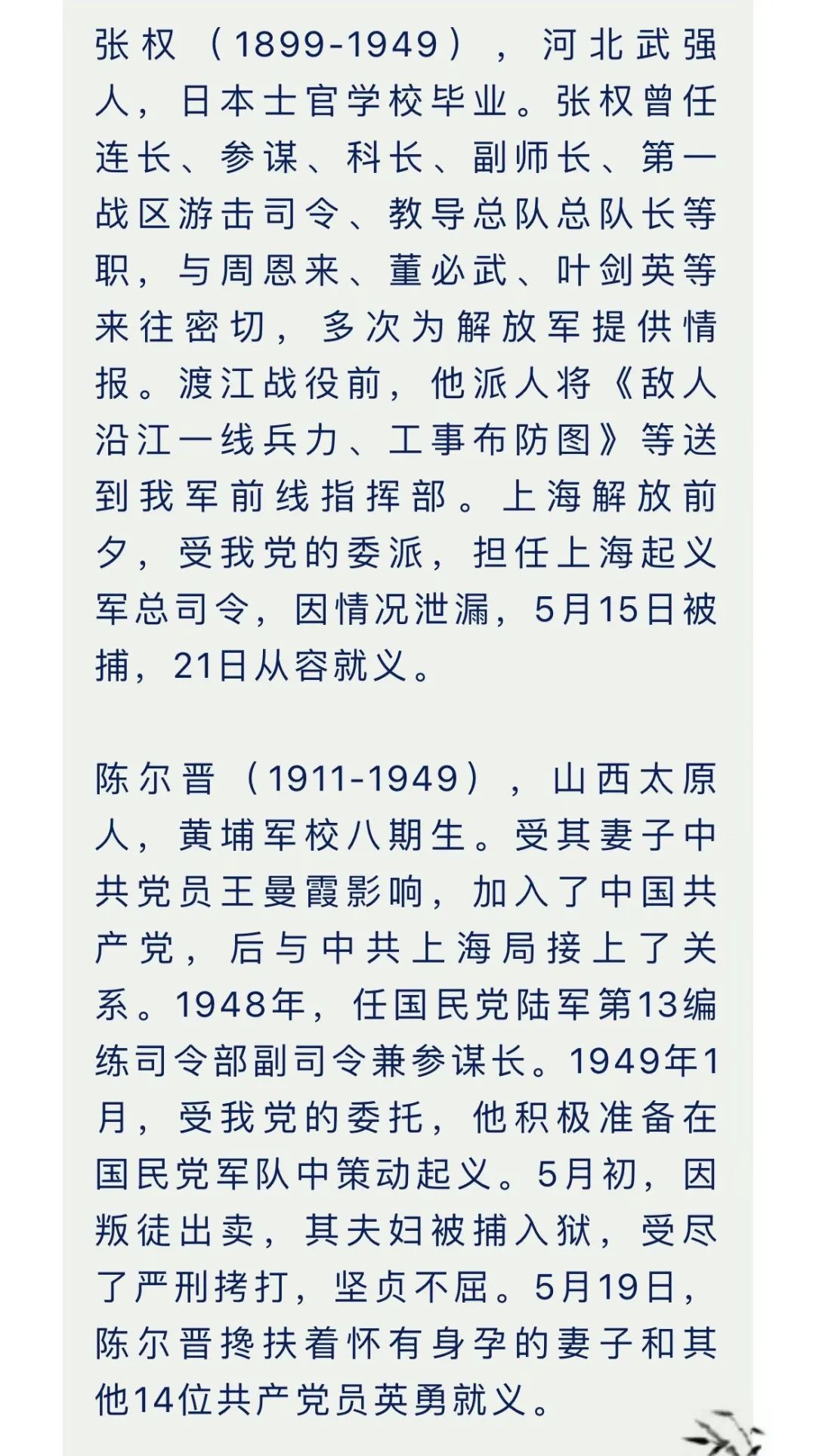 100名烈士中,还有国民党军队、警察中从事策反起义人员21人。
