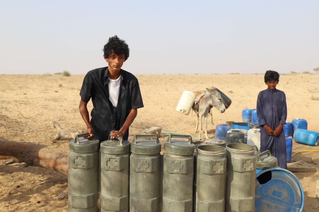 3月21日,人们在也门哈杰省一处慈善水站打水。由于多方面因素,也门不少地区依旧面临饮用水短缺的问题。新华社发(穆罕默德·瓦菲摄)