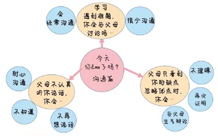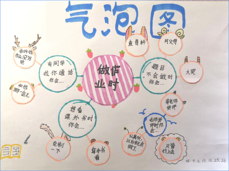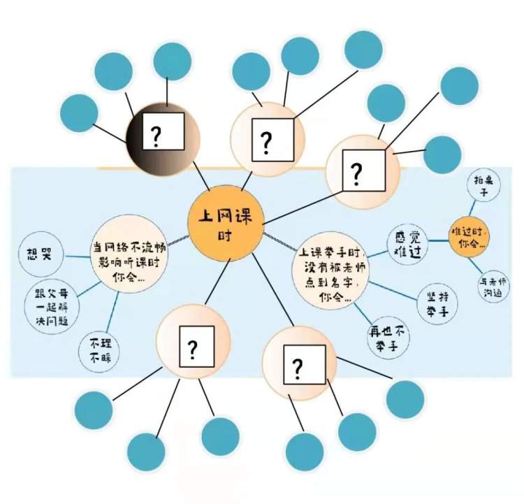 四年级小哥哥小姐姐们利用课后服务时间,自主搭建线上学习空间,积极开展线上头脑风暴,利用BubbleMap(气泡图,是一种思维导图工具)设计评估问题,最终成功设计了一款可以“评估情绪”的模型产品。