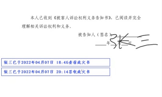第四步,提交后返回文书列表页,再次点击文书可查看签名后的文书。
