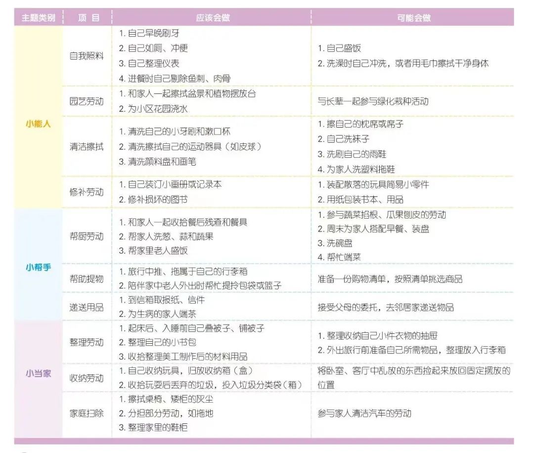 【幼儿家庭劳动清单】