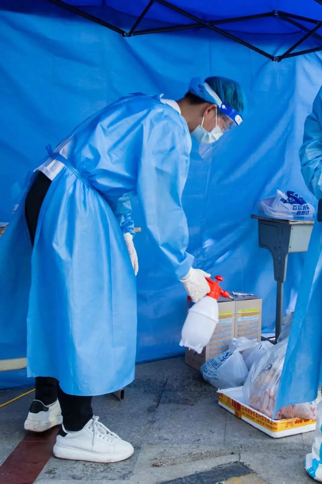 景怡花园归属世纪居委会管辖,户数在450户左右,人口有1400多人。由于居委会办公地址在世纪小区,疫情封控以后,居委会很多工作只能采用线上部署的方式进行,有时候难免会有延迟滞缓的情况发生。在居委会的统一部署发动下,在小区业委会和物业公司的大力支持保障下,景怡花园的很多居民纷纷主动报名,加入到志愿服务队伍中来,并分成了核酸采样、检测物资收发、清运、物资运输、门岗协助、巡查联络、宣传、团购、物品消杀等九个小组,后期根据实际需要又增加了爱心扶助组,落实专人负责,形成了“十组鼎立”的志愿服务工作格局。