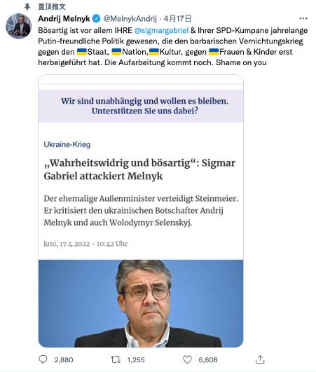 - 俄乌冲突爆发后,梅尔尼克频频批评德国对俄“怀柔”,近来德国总统施泰因迈尔、前外长加布里尔皆被卷入此争议。