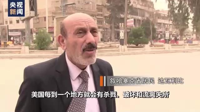 叙利亚哈塞克省居民尼扎尔·达瓦利比:美国每到一个地方就会有杀戮、破坏和流离失所,我们多次被转移到其他地方,就是因为美国的破坏行动。他们摧毁了巴古兹、代尔祖尔、哈塞克等很多地方。