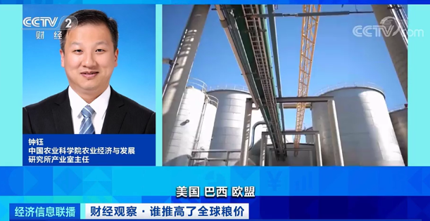 中国农业科学院农业经济与发展研究所产业室主任 钟钰:目前大概有十多个国家发展生物能源,美国、巴西、印尼、加拿大等,在大气变化的背景下,像石油煤炭这种不可再生资源或开采难度加大,未来越来越多的农产品粮食会用来做生物质能源。
