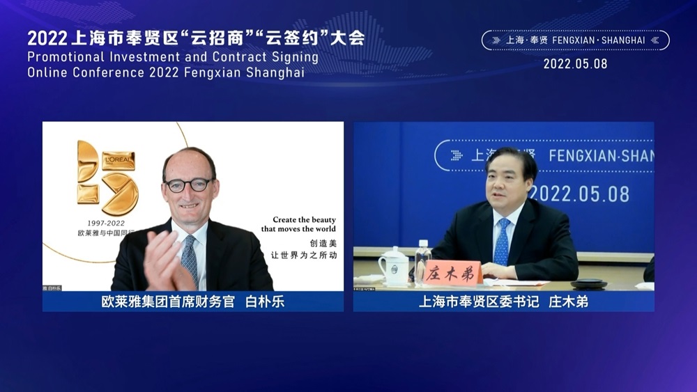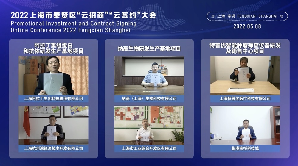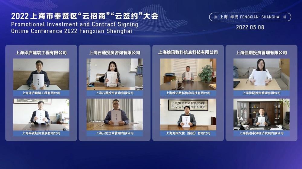 东方网记者奚亮5月8日报道:投资总额超200亿元!今天下午,奉贤区2022年“云招商”“云签约”大会举行,以“云”为媒、以“屏”为介,33个项目代表集中云签约,12家“东方美谷产业集聚中心”云挂牌。
