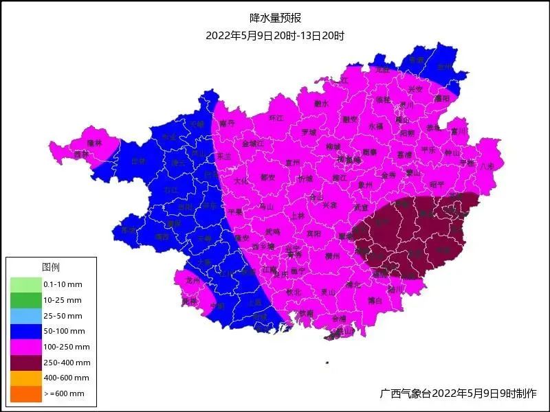 5、9日起,广西遭遇今年入汛以来范围最大、强度最强的暴雨过程,局地降雨有可能突破历史同期极值,致灾风险高。广西启动洪涝灾害Ⅳ级应急响应。