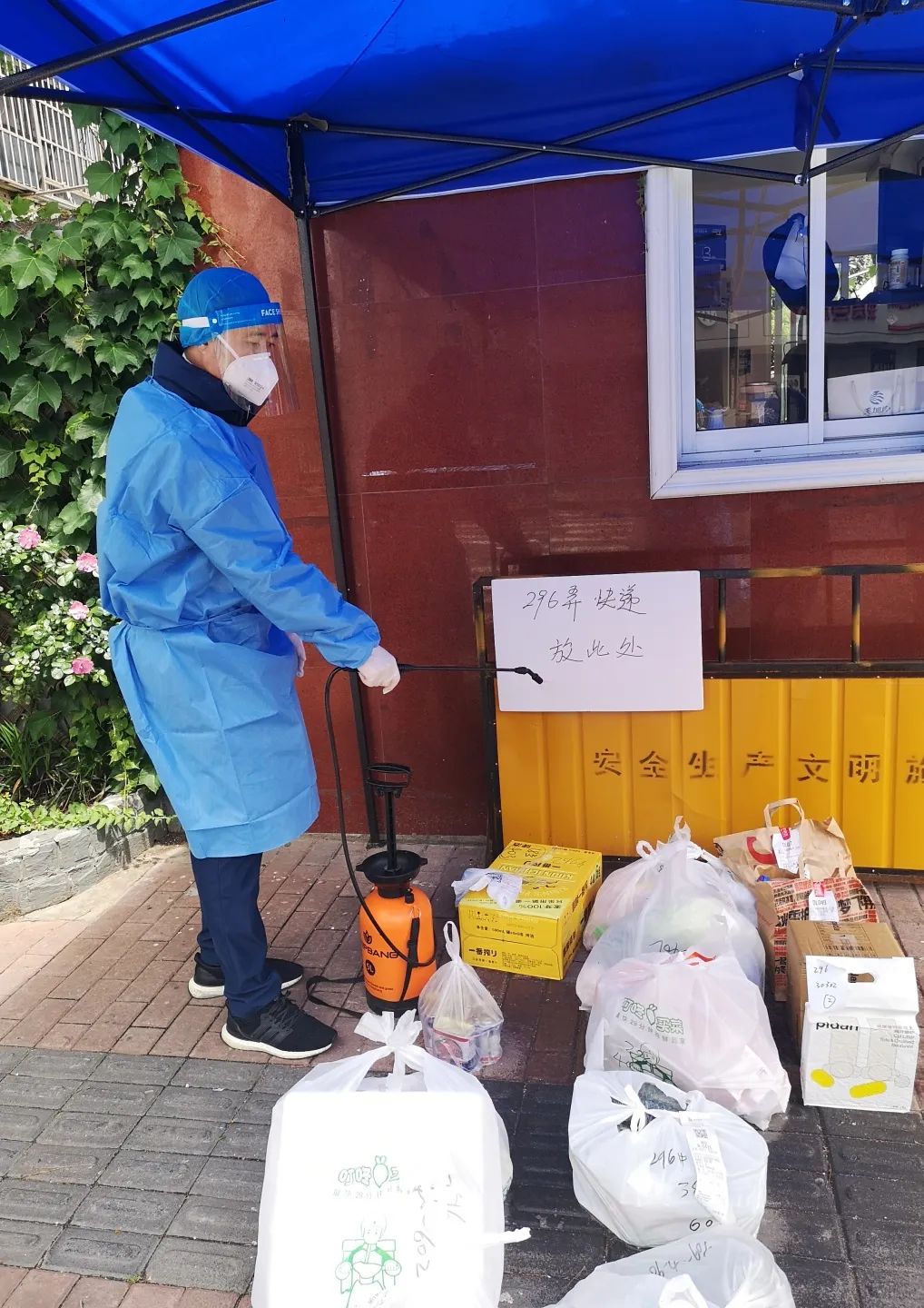 此外,还要求快递员务必扫场所码,以此来确认快递员本身是否符合防疫要求,不符合的不得配送;小区门口还设置了专门区域,对快递做好六面消杀、静置半个小时以上,再由物业员工和志愿者送货上门。
